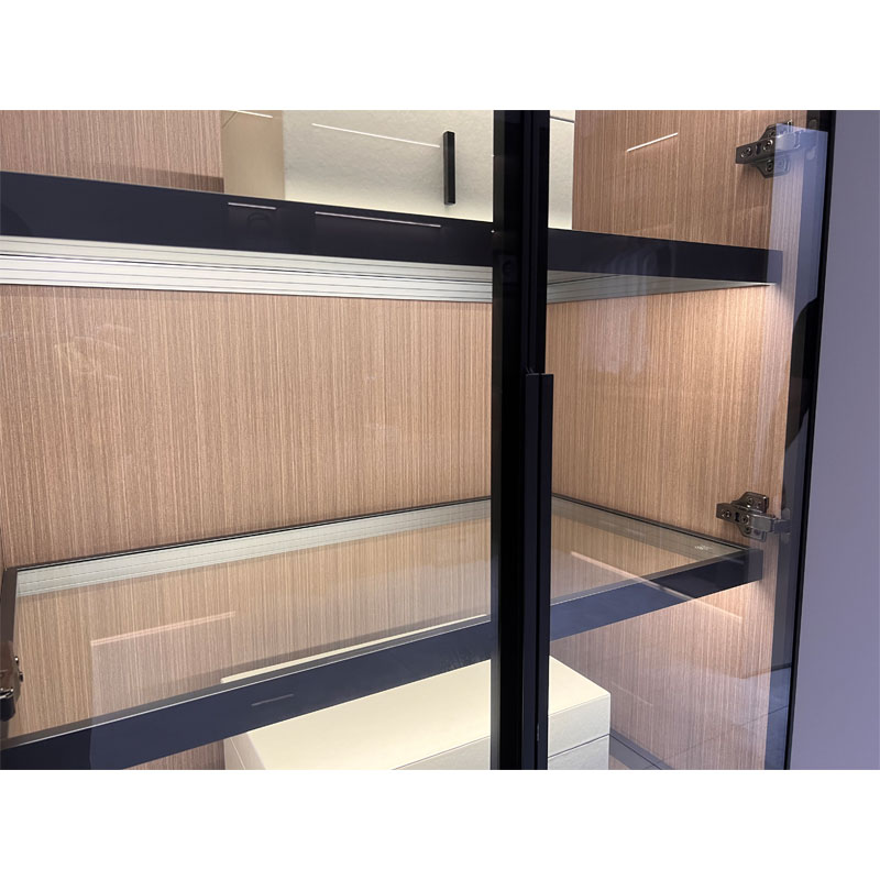 Dulapurile cu uși din sticlă transparentă și lumini calde fac întreaga cameră mai romantică. Puteți plasa câteva bijuterii, ceasuri, ochelari de soare și alte accesorii în ele. Diamantele și metalul vor străluci ca stelele.
