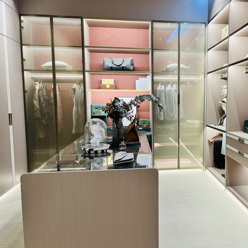 Selectăm aluminiu calificat și geamuri de diferite culori personalizate pentru dormitorul nostru de lux din sticlă și dulapurile noastre.Sinoaheste un furnizor profesionist în China pentru dulapul din sticlă de lux pentru walk-in-room și dormitor. Materialul poate fi folosit pentru multe spații diferite, se potrivește cu lumina LED, face ca casa să umple din plin efectul de lux