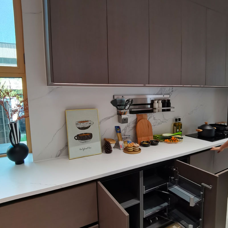 Qingdao Sinoya Co., Ltd. este bucuroasă să vă ofere dulapuri de bucătărie laminate.