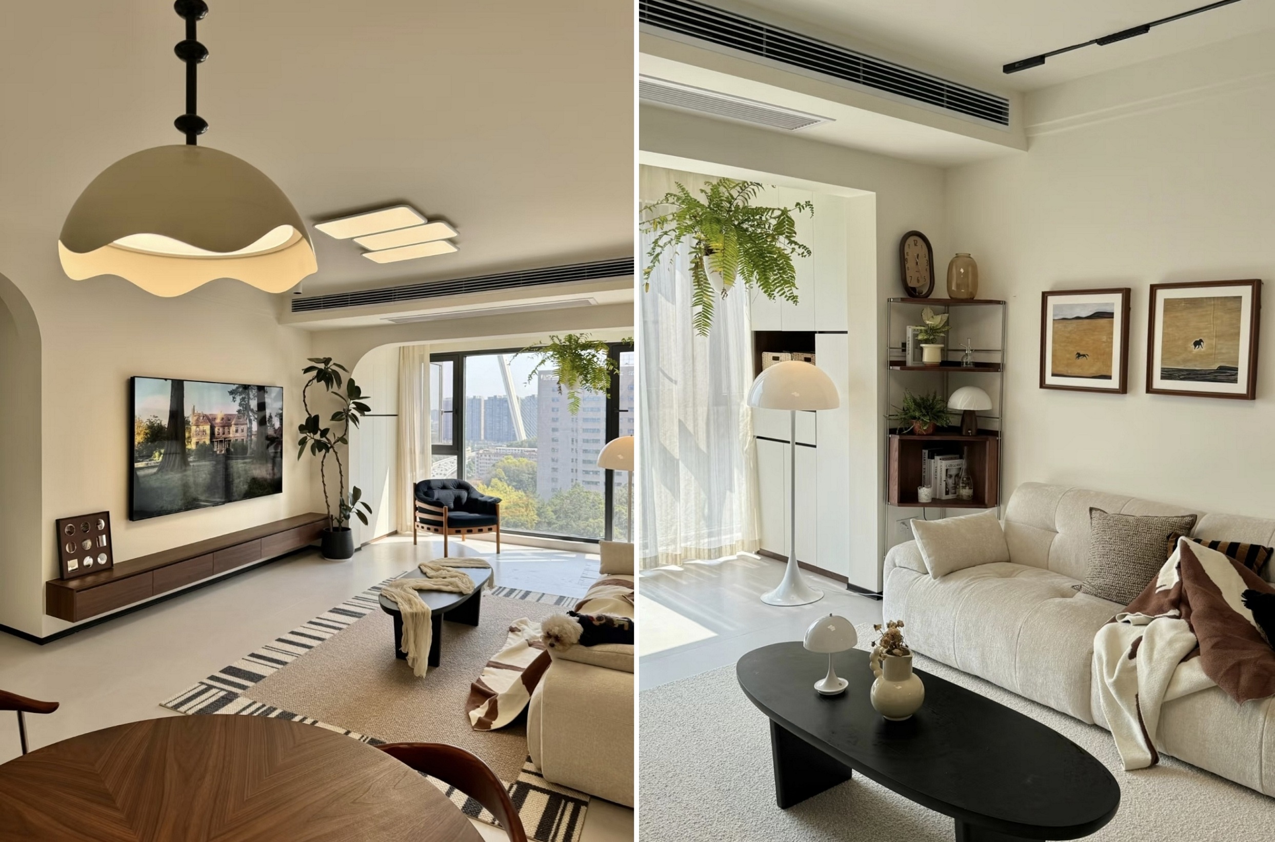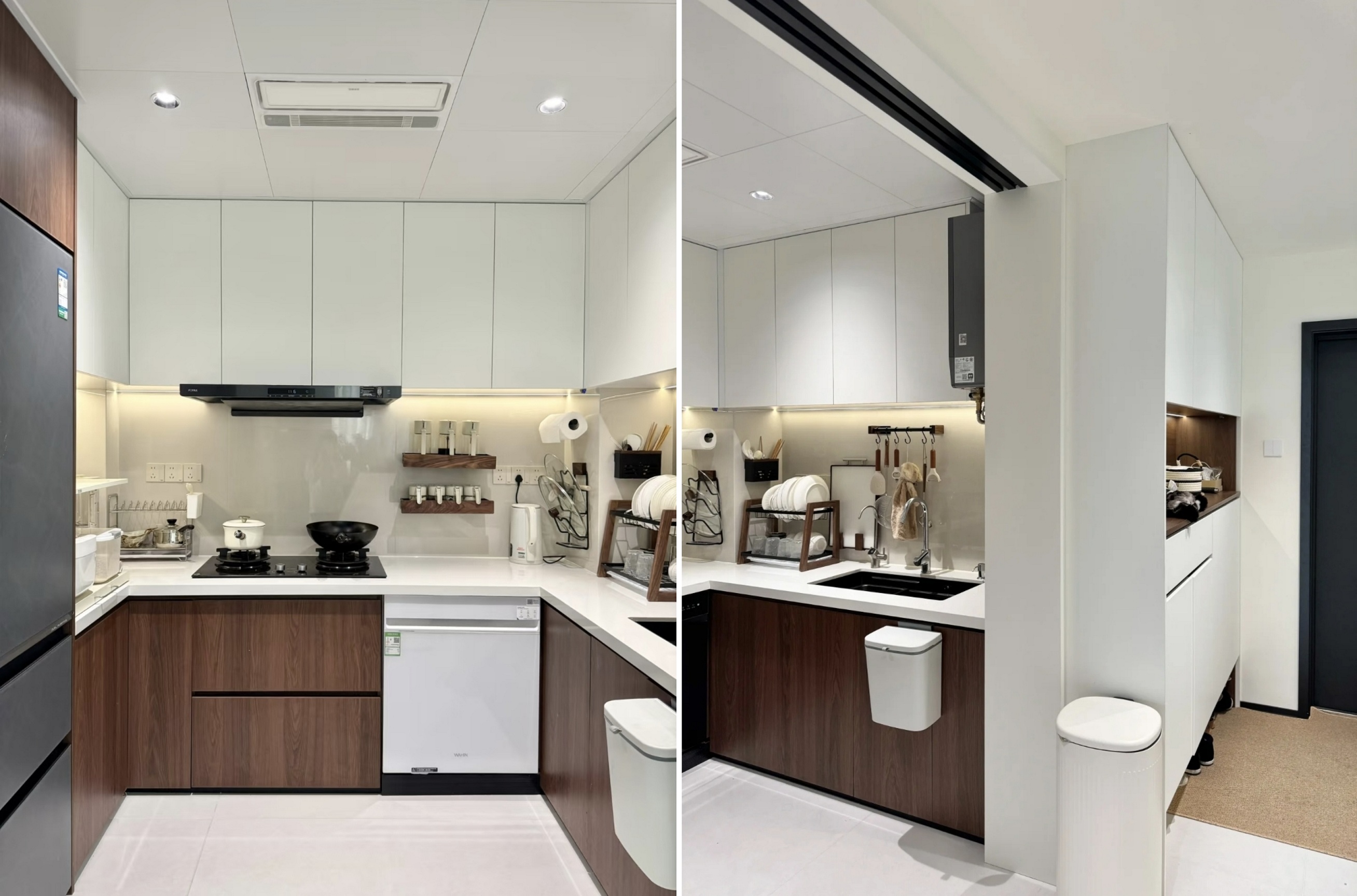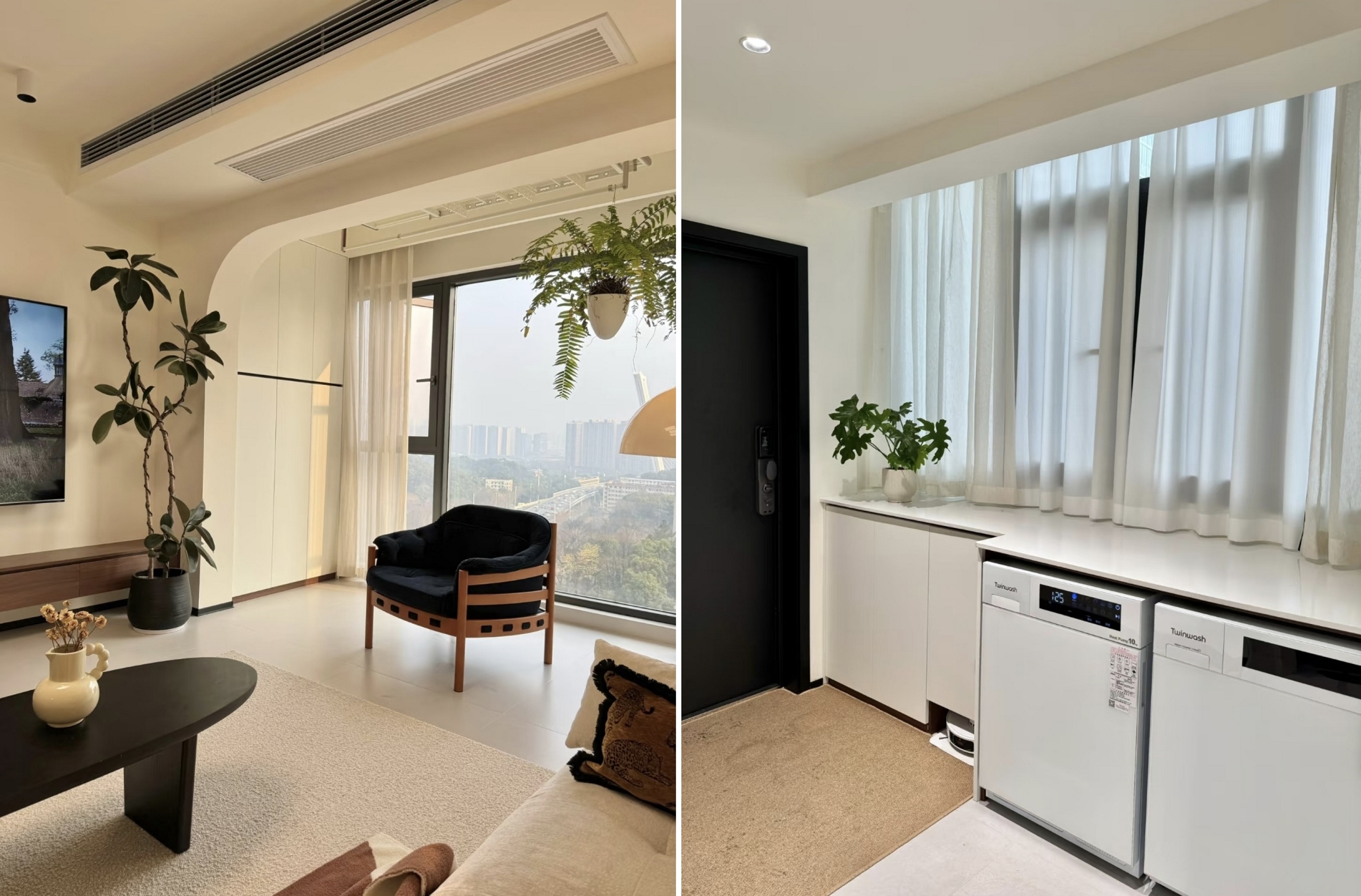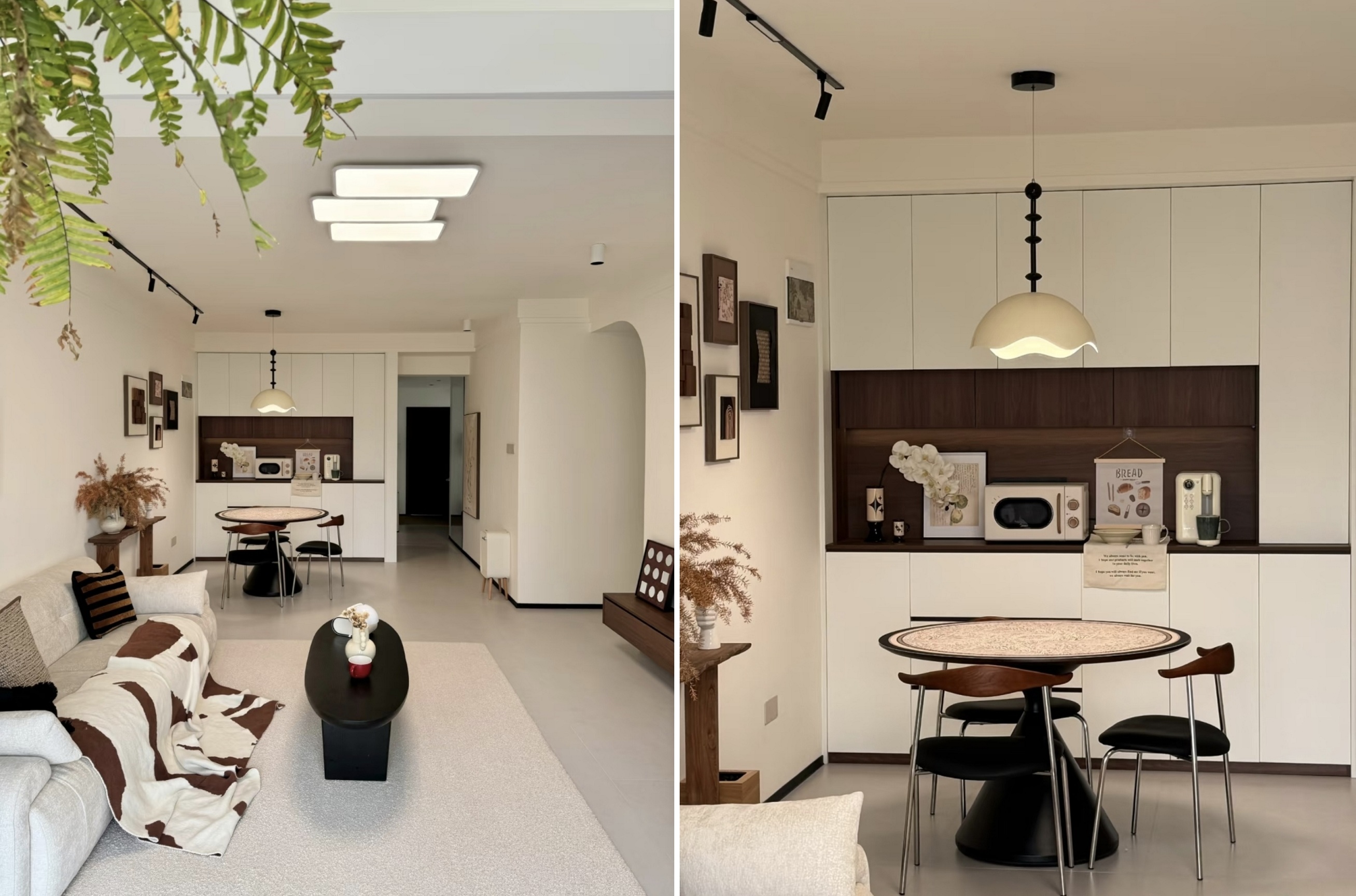 Puteți crede că această casă are doar 90 de metri pătrați, având în vedere paleta sa elegantă de culoare neagră, alb și cafea?